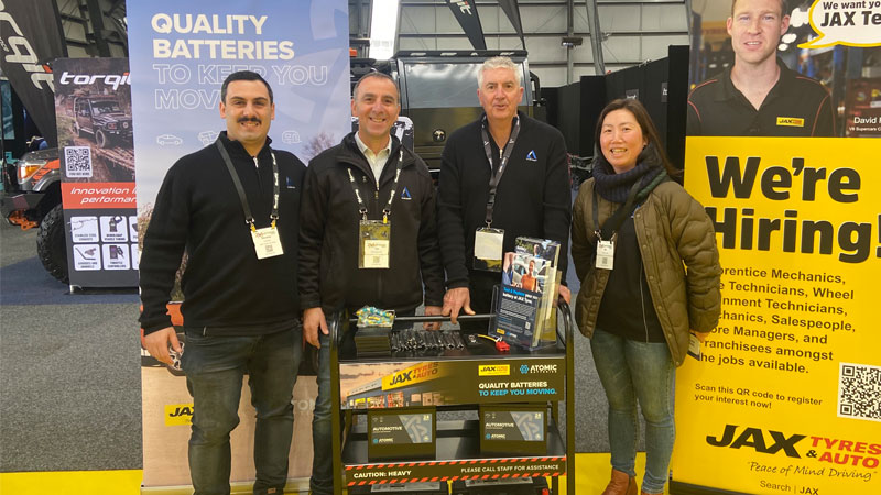 The team at Club Assist with our co-branded battery stand and merchandise at the Jax stand.